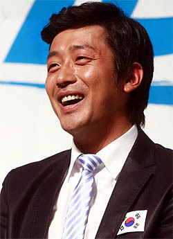 29일 오후 서울 대치동 섬유센터에서 열린 제작보고회에서 스키점프 국가대표팀주장 차헌태 역을 맡은 배우 하정우는 "예고편과 메이킹 영상을 보니 나도 모르게 눈시울이 붉어졌다"고 소감을 밝혔다.