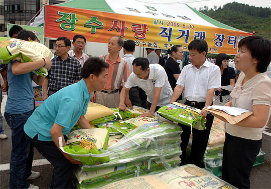 장수군은 최근 쌀값 하락과 재고량 증가에 따른 2009년산 벼 수매 차질이 예상됨에 따라 장수메뚜기쌀 팔아주기 운동에 나섰다.