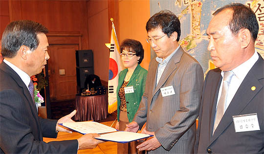 7일 전주 리베라호텔에서 열린 대한건설협회 전북도회 제24대 회장 취임 및 대표회원 상견례에서 이선홍회장이 대표회원들에게 선임증을 수여하고 있다. 이강민(lgm19740@jjan.kr)