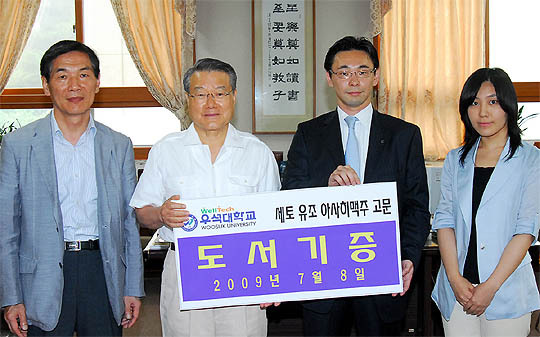 한편 이날 도서를 기증한 세토 유조 전 회장은 지난 1953년 아사히맥주에 입사, 말단 사원에서 회장에 오른 입지전적인 인물로 (사)일·한경제협회장으로 활동하면서 '한·일 고교생 교류캠프'와 '한·일 중소기업상담회'를 운영하는 등 양국 교류증진 및 경제발전에 기여해왔다. 또 지난해 1월에는 아사히맥주 부활의 중심에 서기까지의 인생역정과 경영철학을 담은 자서전 '역경은 두렵지 않다'한국어판(우석대 출판부)을 출간하기도 했다.