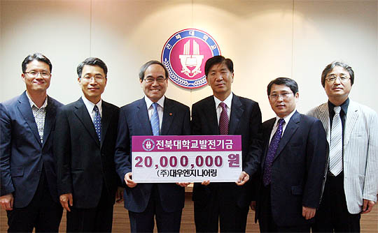 세계 4위 규모의 전북대 대형 풍동실험센터 공사를 맡았던 (주)대우엔지니어링이 대학측에 2000만원의 발전기금을 전달했다.