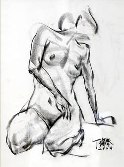 순식간에 한 점의 크로키를 완성하는 이들의 손끝을 피해갈 수 있는 길은 없다. 가슴의 부드러운 곡선을 따라 풍만한 엉덩이로 이어지는 속도감이 묘한 떨림으로 다가온다.