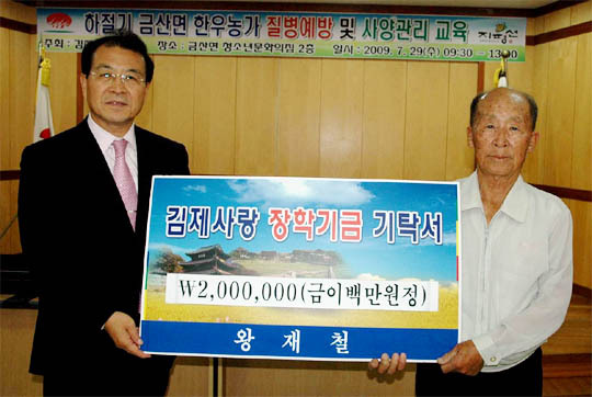 김제시 금산면 성계리에 사는 왕재철(83)씨는 자신의 텃밭 1322㎡에 옥수수를 매년 심어 모은 돈과 자식들이 준 용돈을 아껴 올해도 어김없이 200만원을 들고 지난달 31일 김제시청을 찾았다.