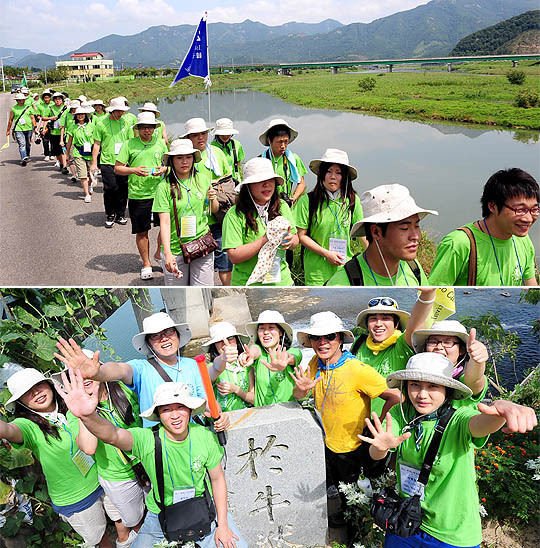해마다 만경강 발원지에서 하구까지 이어지는 지역 대학생들의 도보 대장정 프로그램에 올해는 일본 대학생들이 동참했다.