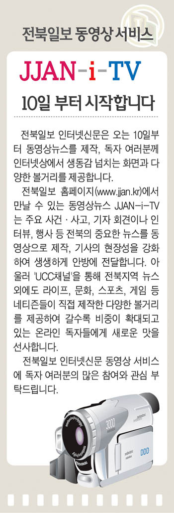 전북일보 인터넷신문은 오는 10일부터 동영상뉴스를 제작, 독자 여러분께 인터넷상에서 생동감 넘치는 화면과 다양한 볼거리를 제공합니다.