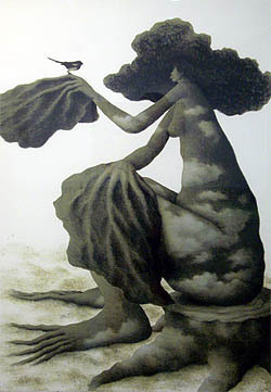 '숲의 노래'에선 새의 부리를 흉내낸 입술로 새와 대화하는 여인이 등장한다. 식물로 의인화된 풍만한 여체의 다감하고 따뜻한 시선이 현실의 고달픔을 껴앉는다.