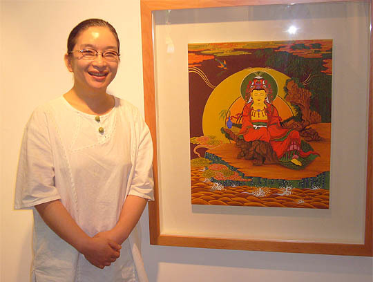 11일부터 16일까지 전주교동아트센터에서 '불화전'을 열고 있는 조경순씨(50). 그의 눈은 점점 관세음보살상을 닮아가고 있었다. 오래 전부터 마음에 품었던 작업이었지만, 섣불리 달려들 수 없었기에 기다림이 길었다.