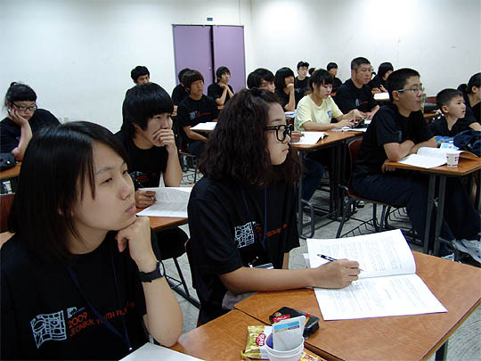 17일부터 우석대 연극상영관에서 열리고 있는 '2009 전북 청소년 영화캠프'에 참가한 청소년들이 강사의 강연에 귀를 기울이고 있다. (desk@jjan.kr)