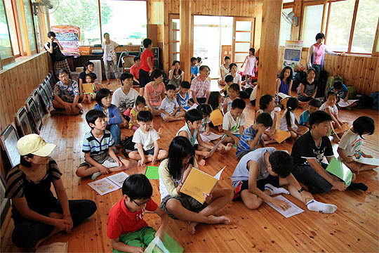 진안군과 생태지평연구소가 마련한 아토피 여름캠프에 입소한 학생들이 강연을 듣고 있다. (desk@jjan.kr)