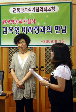 지난 15일 저녁 7시 30분 전주 한옥마을 교통아트센터. 전북방송작가협의회가 재발족하면서 한국방송작가 김옥영 이사장 초대, 강연을 가졌다. 그는 이날 탈도 많고 말도 많았던 사건사고, PD 집필제 사건 등을 이야기하며 그간의 소회를 솔직담백하게 털어놨다.