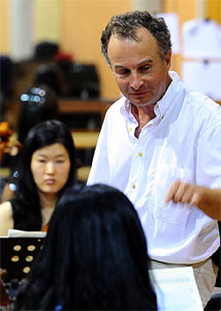 프랑스 오뜨브르따뉴 청소년 교향악단 지휘자 디디에씨가 한국소리문화의전당 청소년교향악단과 합동연주회를 준비하고 있다. (desk@jjan.kr)