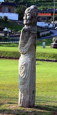 석인상의 전체 높이는 550cm, 머리에서 다리 끝까지의 길이는 370cm며 얼굴의 눈이 심하게 돌출돼 분노하는 모습이며 상반신은 옷을 걸치지 않은 반나체이다.