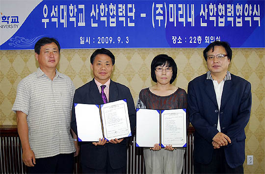 대학본부 소회의실에서 열린 이날 협약식에는 서동석 우석대 산학협력단장과 이혜련 (주)미리내 대표 등 양 기관 관계자 10여명이 참석했다.
