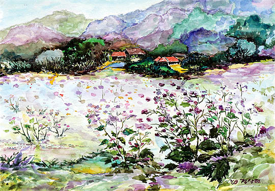 10일까지 김제문화예술회관에서 열리고 있는 '내안의 풍경전'엔 지난 8월 작가들과 함께한 스케치여행을 통해 바다와 하늘의 경계를 허무는 황금빛 낙조의 변산반도, 방조제를 사이에 두고 바다와 육지의 운명이 뒤바뀔 신시도 등 과거와 현대의 모습이 공존하는 새만금이 풀어졌다.