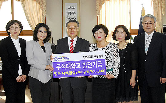 이날 대학본부 총장실에서 열린 발전기금 전달식에는 라종일 총장과 특수교육과 교수 및 동문 등 10여명이 참석했다.