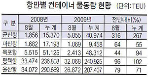 8월 한달동안의 물동량은 5855TEU로 전년 동기보다 무려 316%가 늘어났다.