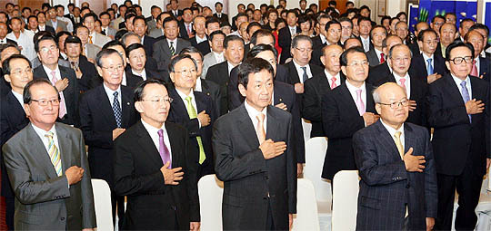 새만금 코리아 창립 1주년 정책세미나 및 기념식이 23일 서울 전쟁기념관에서 강현욱 이사장과 김완주지사등 500여명이 참석한 가운데 열려 기념식을 하고 있다. /전북도청 제공 (desk@jjan.kr)