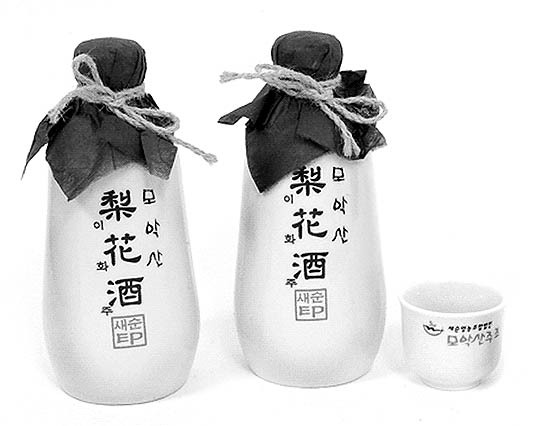 하얀색 도자기 용기에 담겨 있어 고급스러움을 더 하는 이 술은 선물용으로 적합하다. 가격은 이화주 2본 세트에 3만2000원, 이화주축 1본은 2만5000원이다.