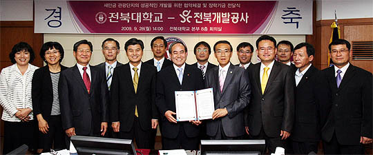 전북대는 28일 오후 대학본부 회의실에서 전북개발공사와 교류협약을 체결, 새만금 관광단지 개발에 협력하기로 했다.