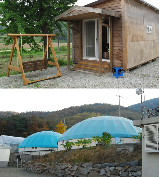 충남 홍성군 홍동면에 지어진 '패시브하우스'(위)와 충남 청양군에 가동중인 '바이오 가스 플랜트'는 에너지 절약과 환경보호에 기여한다. (desk@jjan.kr)