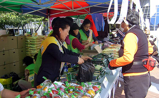 전북농협은 11일 전북도청 광장에서 고향주부모임(회장 이희숙)과 농가주부모임(회장 황혜숙), 농촌사랑봉사단(회장 소금옥) 회원들이 '농촌! 고향 돕기 직거래 장터'를 가졌다고 밝혔다.