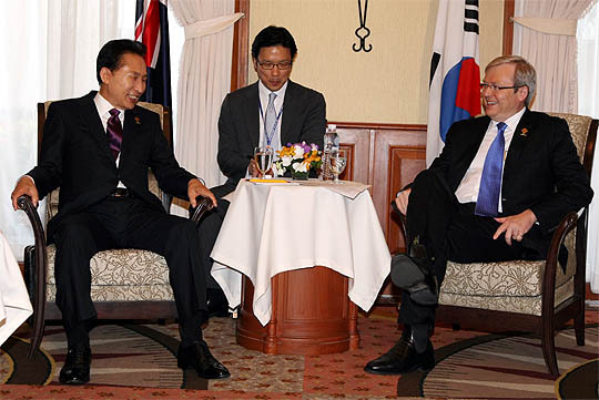 이 대통령은 또 케빈 러드 호주 총리와 정상회담을 갖고 G20 체제 강화, 기후변화 대처, 북한 핵문제 등에 대해 논의했다.