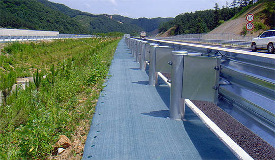 이 이사는 "갓길에 잡초가 자랄경우 교통사고 등 위험성이 높은데다 잡초관리비가 소모됨은 물론, 인부들의 사고위험도 높다"면서 "도로공사에서도 이런 점 때문에 식생억제효과가 높은 방초매트를 선호하고 있다"고 설명했다.