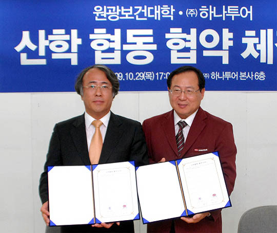 원광보건대학(총장 김인종)과 (주)하나투어(대표이사 권희석)는 지난달 29일 하나투어 본사에서 인력양성과 고용촉진을 위한 공동노력, 상호협력 네트워크 구축 등을 위한 산·학협력 협약을 체결했다.
