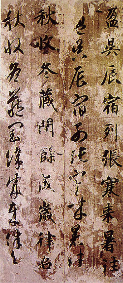 북조를 통일한 수나라는 불교를 표방하여 일부 사경이 남아있으나 서예자료는 지극히 미약한 편이다. 「수서(隋書)」 등의 정사에 서가로서 거론된 사람은 10인 정도에 지나지 않는다. 「술서부(述書賦)」에 방언겸(房彦謙)과 노창형(盧昌衡)의 이름이 올라 있고, 당의 명서가 저수량의 스승으로 전해지는 사릉(史陵), 계법사비(啓法寺碑)를 쓴 정도호(丁道護, 생졸미상)가 알려져 있을 뿐이다.