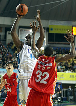 12일 전주실내체육관에서 열린 2009∼2010 KCC 프로농구 홈경기에서 양 팀 중 최다 득점을 기록한 김효범(28득점)과 양동근(15득점)의 활약을 앞세운 모비스에 84대87로 졌다.