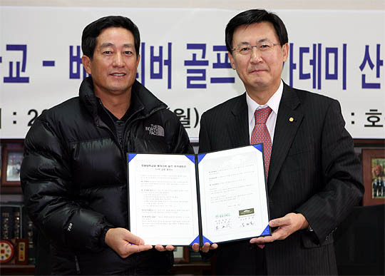 강희성 총장과 곽유현 원장은 "베어리버 골프아카데미에 소속된 전문 프로들이 대학 강좌에 참여해 체계화된 이론과 실기 지식을 가르칠 것"이라며 "양 기관은 상호 교류를 통한 유대강화, 전문적인 교육시스템 개발에 주력하겠다"고 말했다.