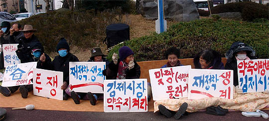 한편 노인들의 농성이 장시간 이어지자 많은 시민들은"구체적인 내용에 대해 왈가불가할 입장은 아니지만 요즘 추위에(농성을 벌이고 있는)노인들의 건강이 염려스럽다"고 안타까워 하고 있다.