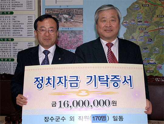 장수군 정치자금 1600만원 기탁