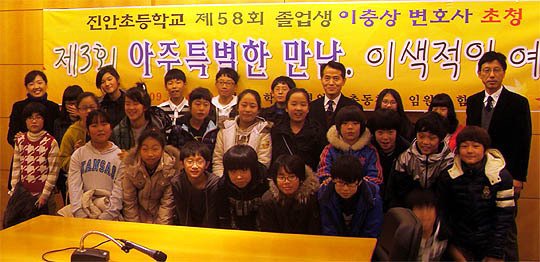한편 진안초의 '아주 특별한 선배와의 만남'은 올 해로 3번째이며, 올 행사를 주도한 이충상 변호사는 현재 최고의 변호사들의 집합체라 할 수 있는 법무법인 '바른'에 근무하고 있다.