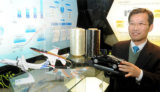 국내 탄소산업 메카로 부상한 전주기계탄소기술원. 전주시 팔복동에 위치한 전주기계탄소기술원은 건물 로비부터 탄소섬유(corbon fiber)를 활용한 제품 모형이 전시돼 방문객의 눈길을 끈다. 세계적으로 유명한 스포츠카부터 항공기, 그리고 최첨단 전투기까지 전시, 탄소섬유가 전 산업분야에 걸쳐 각광받고 있다는걸 보여주고 있었다. 전주기계탄소기술원은 원천기술을 보유한 국내 유일의 탄소소재산업 거점이다. 관련 기업들과 공동연구를 통해 우리나라 탄소산업 발전에 큰 기여를 하고 있는 곳이다.