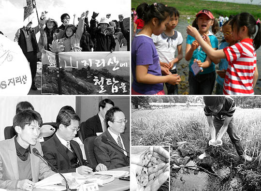 (윗줄 왼쪽부터 시계방향으로)자연공원법 시행령 개정안이 입법예고되자 지리산 케이블카 설치를 반대하는 시민들이 지리산에서 케이블카 설치 반대시위를 벌였다. 강의 소중함을 알리기 위한 체험프로그램도 열렸다. 만경강 생태체험에 참여한 어린이들이 강 생태환경을 살펴보고 있다. 멸종 위기동물로 지정된 맹꽁이가 전북대학교에서 발견되었다. 전주시는 시민들과 함께 저탄소 녹색성장을 위해 시민과 함께 실천할 21개 과제를 발표했다. (desk@jjan.kr)