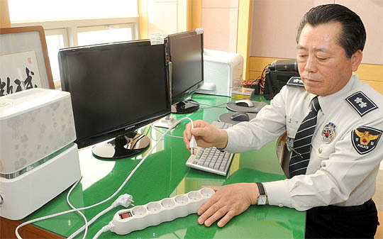 녹색실천, 녹색습관으로 겨울철 내복입기를 생활화하고, 청사 내 실내온도를 20°C로 내려 에너지 절약을 실천하고 있는 전북지방경찰청 이동선 청장. "썰렁해진 실내온도는 사랑의 성금모금 등 적극적인 나눔실천을 통해 따뜻하게 끌어올릴 수 있다고 생각합니다"라며 환하게 웃는 그의 넉넉한 모습이 아름다웠다.