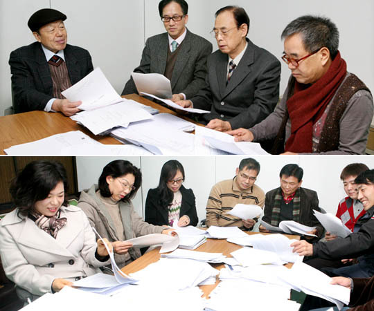 '2010 전북일보 신춘문예' 예심은 지난 18일 오후 전북일보 편집국에서 진행됐다. 올해 역시 전북일보의 전통을 살려 경종호 기명숙 김재희 김형미 문 신 안성덕 장창영 최기우 황정연씨 등 전북일보 신춘문예 출신 문인들의 모임인 '전북일보 문우회'가 맡았다.