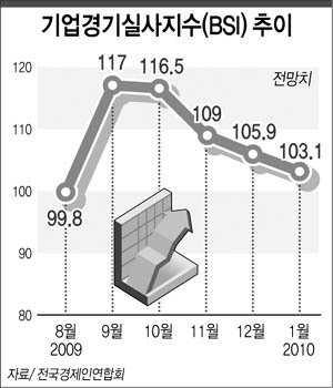 특히 BSI 전망치는 5개월 연속 100을 넘긴 했지만, 4개월 연속 하락세를 보이면서 기업 경기전망의 호전과 부진을 판단하는 기준인 100선을 위협했다.