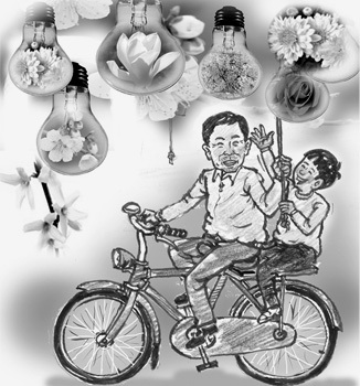 봉씨 아저씨는 서둘러 자전거를 페달을 밟으며 마을을 빠져나왔습니다. 아무도 아저씨를 본 사람은 없었습니다. 아저씨의 직업은 '꽃 켜는 사람'입니다. 기어도 없는 구식 자전거를 몰고 이 동네, 저 동네를 떠돌며 하늘에 연결 된 새끼줄을 당깁니다. 그러면 봉오리는 꽃잎 열고 봄소식을 전합니다. 요즘은 주로 목련꽃을 켜는 일을 합니다. 아저씨가 지나간 동네는 어김없이 전구처럼 환한 목련꽃이 피어납니다.