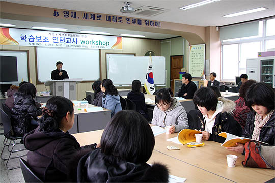 무주교육청(교육장 박내순)은 지역사회 소통과 화합을 다지며 관내 초등학교 학력 향상과 양질의 교육수준의 향상을 위해 29일 학습보조인턴교사 및 담당교사들을 대상으로 워크숍을 실시했다.