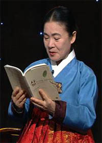 이어 유안진은 시 '알고'를, 박범신은 에세이 '비우니 향기롭다'를 해설과 함께 들려주고, 안숙선은 판소리 '춘향가' 중 '갈까부다' 대목을 낭독한 뒤 판소리 '수궁가' 중 '범 내려온다'를 노래했다.
