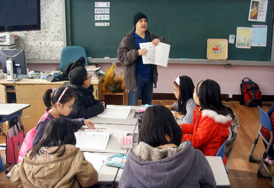 지난 여름방학에 이은 이번 캠프는 현직 영어 전담교사 4명과 진안교육청 소속 원어민 보조교사 4명이 수준별로 4개반으로 나누어 팀티칭행태로 진행되고 있다.