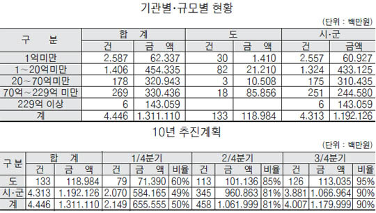 우선 추진대상 사업은 4446건에 1조3111억원으로, 전북도는 133건에 1190억원, 14개 시·군은 4313건에 1조1921억원이다.(표)
