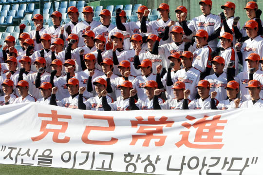 김태균, 이범호 등 팀의 기둥 선수들을 일본 프로야구에 모두 보낸 뒤 객관적 전력에서 하위권으로 평가받고 있지만 정신력으로 어려움을 극복해 달라고 주문한 것이다.