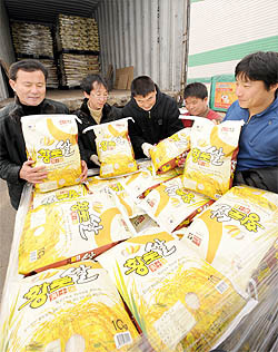 영농조합법인 완주 지성 RPC 송병진대표와 직원들이 자체브랜드인 황토쌀을 수출길에 오르기전에 최종 점검을 하고 있다. 이강민(lgm19740@jjan.kr)