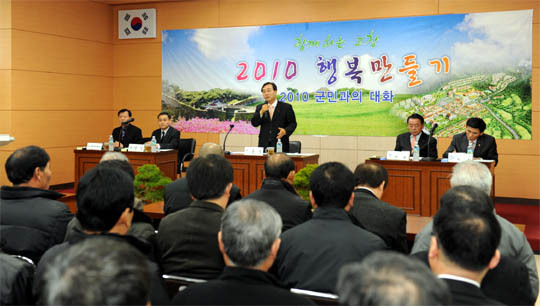 이강수 군수는'함께하는 고창 2010 행복만들기'라는 주제로 각 읍·면을 20일부터 29일까지 순회하며 주민과의 대화의 장을 마련한다.