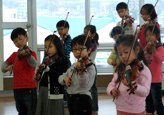 '바이올린 바이러스'에 감염된 아이들. 활 켜는 법도 몰랐던 아이들이 3주 만에 미뉴에트를 소화할 수 있게 된 것은 작지만 소중한 기적이다. 홍윤기 삼례중학교 교장의 열성과 은희천 전주대 교수의 열정이 빚어낸 결실.