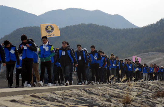 지난해 마이스터고로 지정된 군산기계공고의 2010학년도 신입생들이 '새만금방조제 도보현장체험'으로 미래 기술명장의 각오를 다졌다.