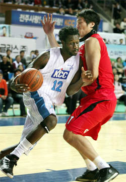 후반 들어서도 KCC의 기세는 멈추지 않았다. '맏형' 추승균의 외곽 슛이 연이어 림에 꽂혔고 강병현의 3점 슛도 성공하면서 점수 차를 벌려 놓았다. 전자랜드는 KCC의 압박수비에 가로막혀 공격 실마리를 풀어나가지 못하고 3쿼터를 71대59로 12점 뒤진 채 마쳤다.